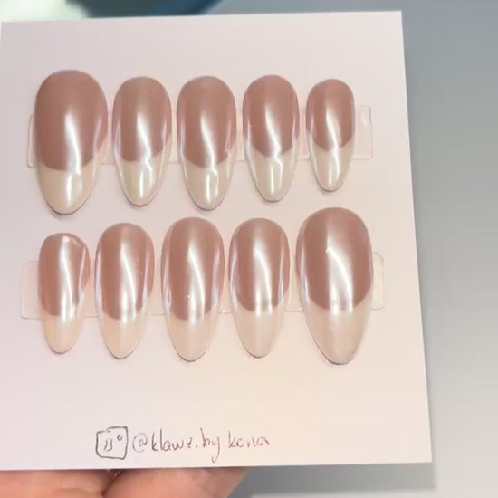 Wind down with this classic french tip manicure! Dusted with chrome over a basic french design, these nails are perfect for everyday wear or for gifts for that special someone starting their press-on journey!